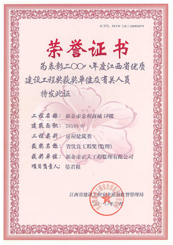新余市正大工程監(jiān)理有限公司依托新余市建筑設(shè)計(jì)院,于1995年11月成立,是新余市開(kāi)展監(jiān)理工作最早的監(jiān)理單位,本公司具有建設(shè)部核發(fā)的房屋建筑工程甲級(jí)監(jiān)理資質(zhì)、市政公用工程乙級(jí)監(jiān)理資質(zhì)、國(guó)家人防辦核發(fā)的人防工程監(jiān)理乙級(jí)資質(zhì)。我公司始終堅(jiān)持“客戶至上、質(zhì)量第一、信守合同”的經(jīng)營(yíng)理念;追求“為社會(huì)創(chuàng)造價(jià)值、為業(yè)主創(chuàng)造效益、為自身謀求發(fā)展”的經(jīng)營(yíng)宗旨;遵循“守法、誠(chéng)信、公正、科學(xué)、優(yōu)質(zhì)、高效”的工作原則,以雄厚的技術(shù)力量、完善的管理制度、豐富的監(jiān)理經(jīng)驗(yàn)、良好的企業(yè)信譽(yù)迅速成為我市監(jiān)理行業(yè)的一支新銳力量! 查看更多>>
